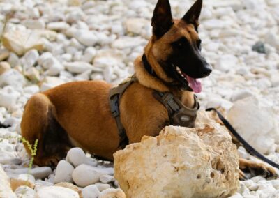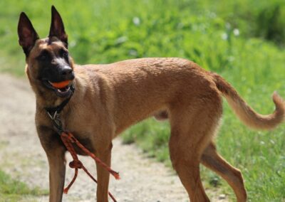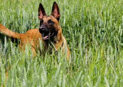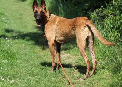 Je suis plutôt un gentil chien mais j’ai besoin d’être bien en confiance pour montrer tout mon potentiel. Je peux en effet être réactif aux humains plus particulièrement aux hommes, notemment si je suis stressé.
