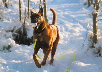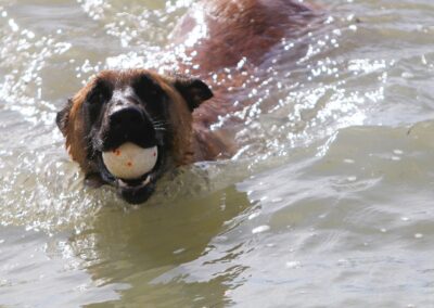 Je suis très obéissant et comprends vite ce que l’on attends de moi, je reviens au rappel et je suis particulièrement calme en balade. J’adore jouer avec balle ou ballon et me rafraichir dans l’eau, ainsi qu’une bonne séance de carresses.
